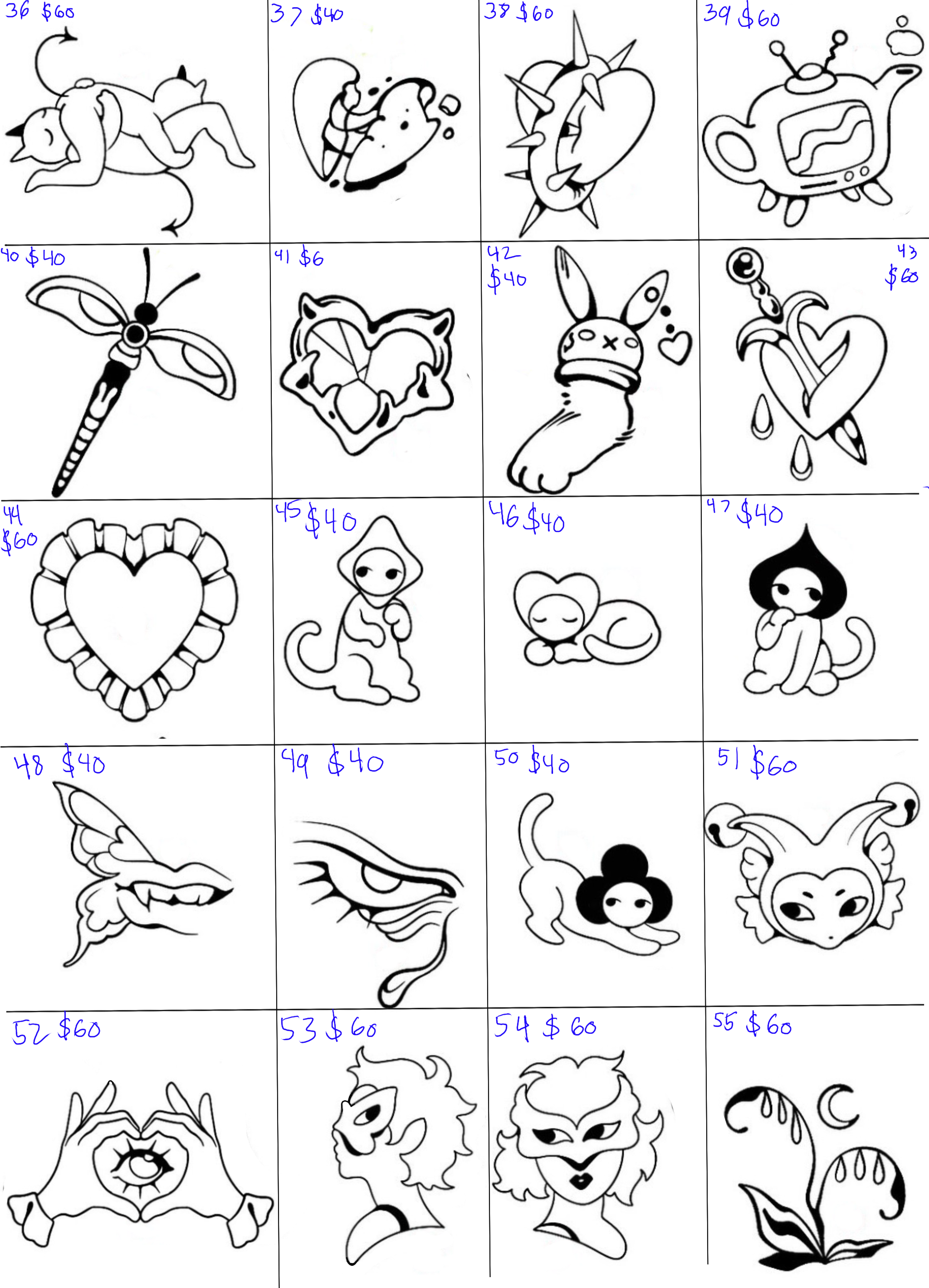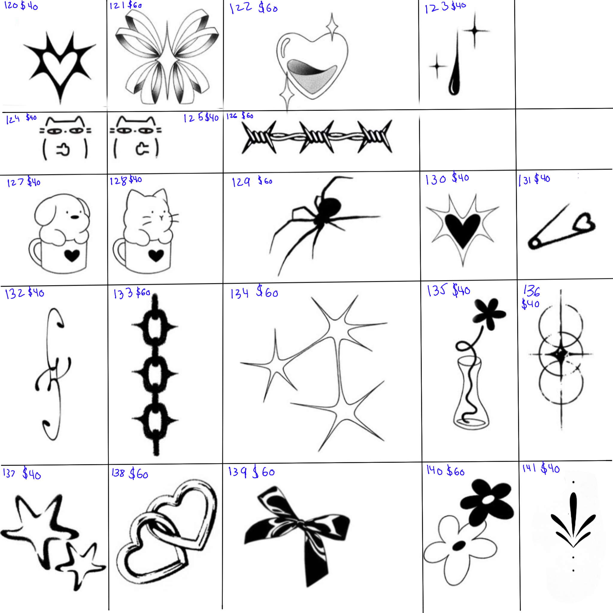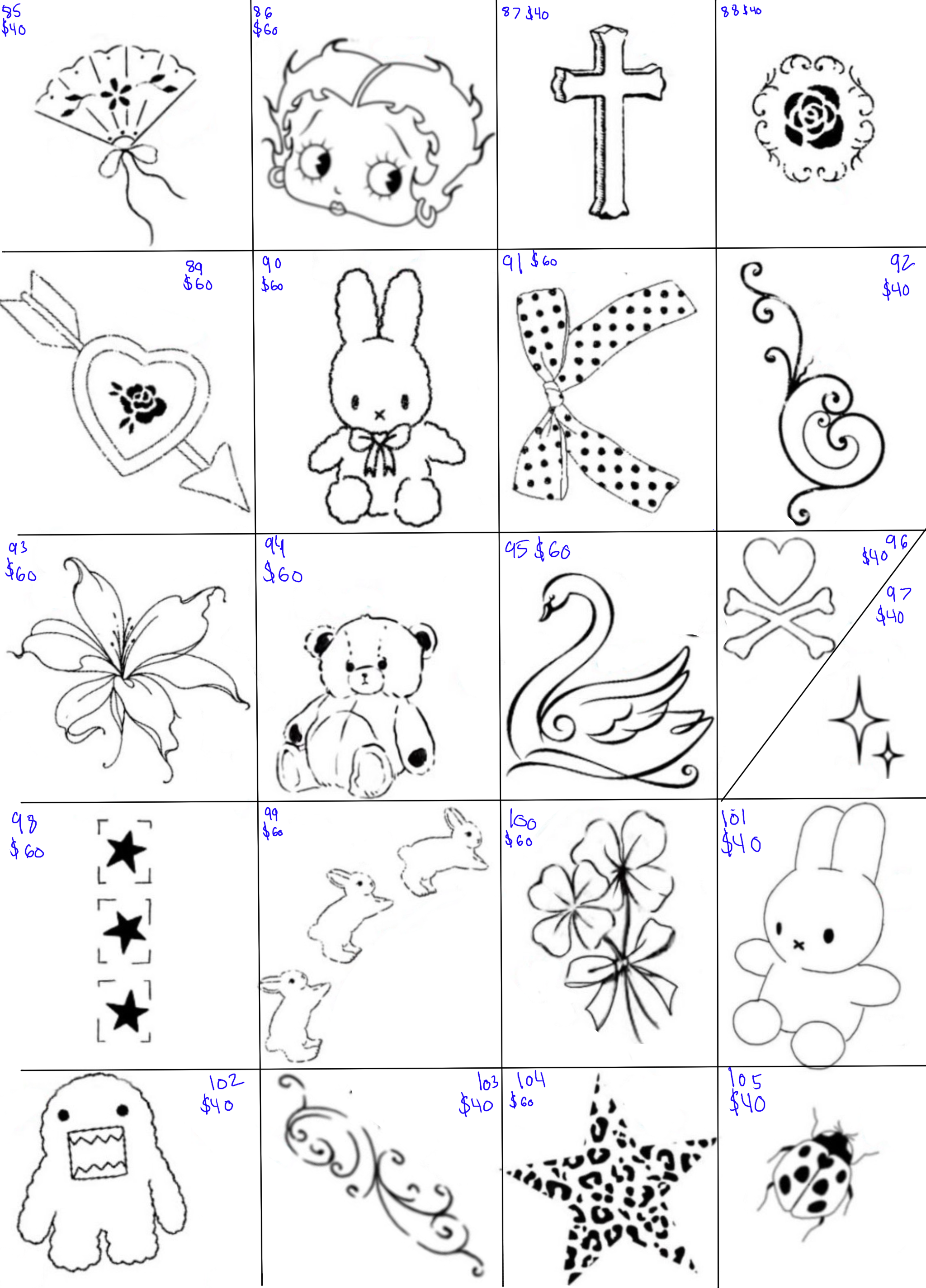 The price difference reflects the detail in the tattoos: $20 designs are simpler, while $40 tattoos feature more intricate detail. We’ll have flash tattoos sorted by price on the day of the event, plus you can bring your own design.