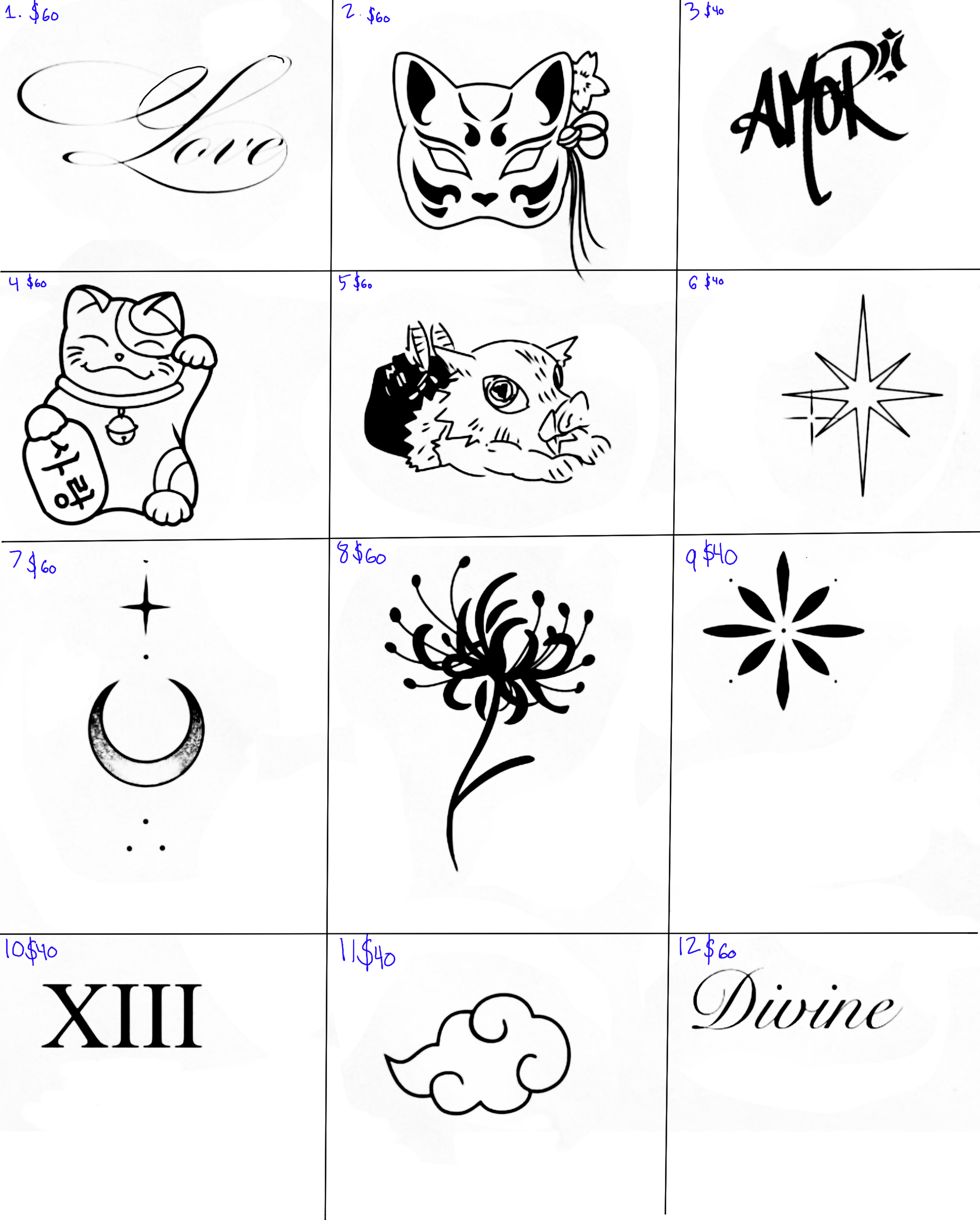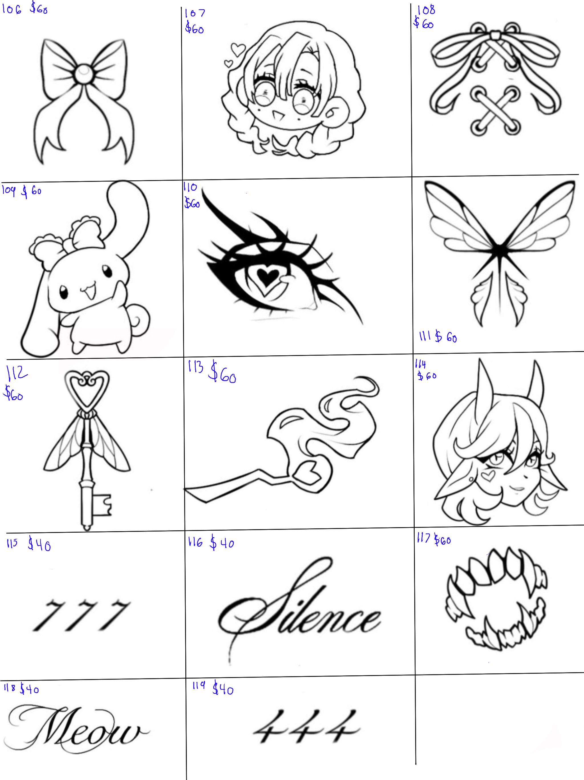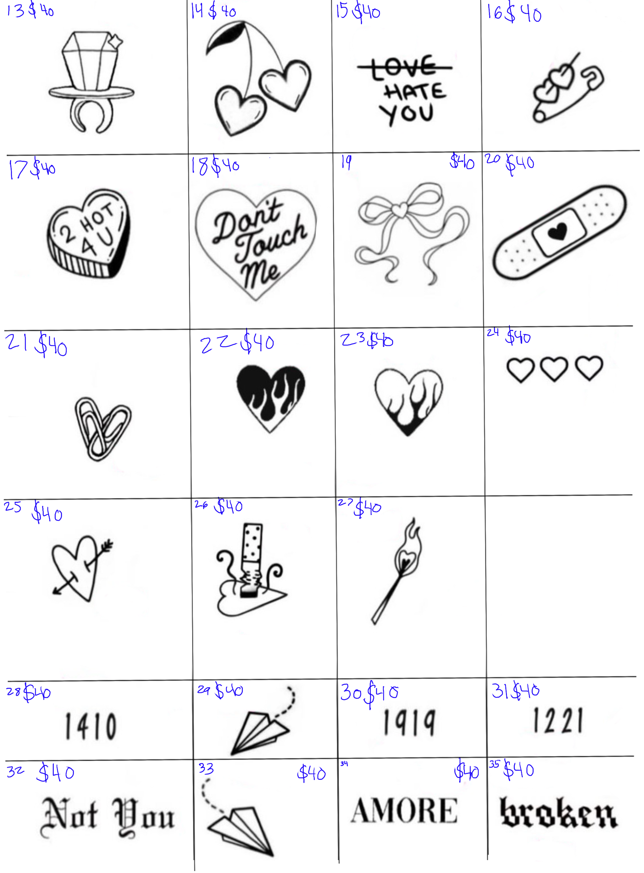 The price difference reflects the detail in the tattoos: $20 designs are simpler, while $40 tattoos feature more intricate detail. We’ll have flash tattoos sorted by price on the day of the event, plus you can bring your own design.